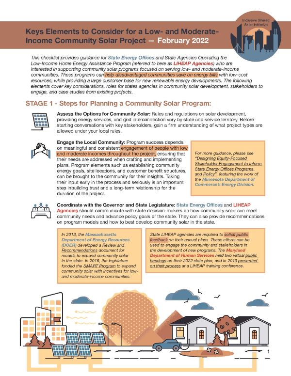 Inclusive Shared Solar Initiative Releases Checklist: Key Elements to Consider for a Low- and Moderate-Income Community Solar Project